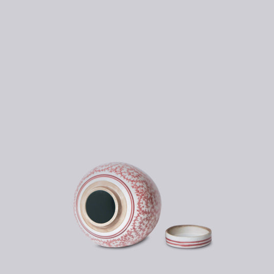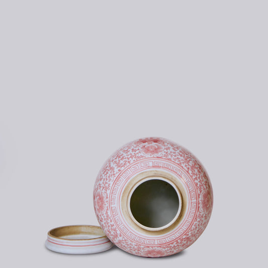 Red and White Porcelain Scrolling Peony Round Jar