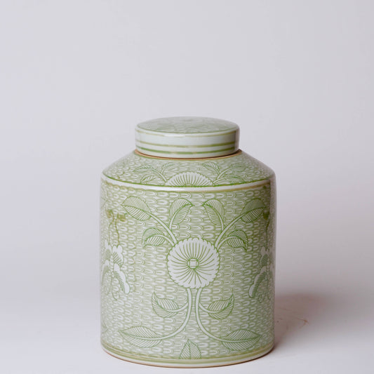 Deco Peony Green and White Porcelain Canister