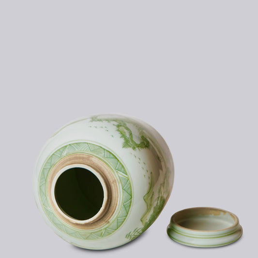 Landscape Green and White Porcelain Lidded Jar