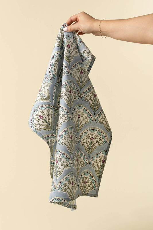Sakura Block Print Tea Towels S/2, Blue