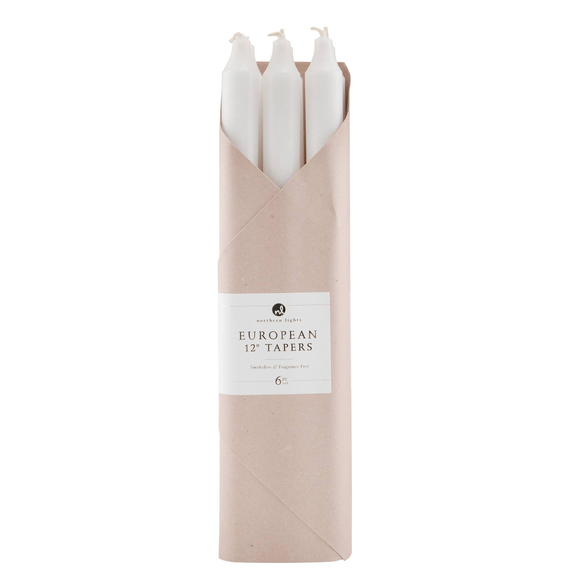 Premium quality, fragrance free, European-style 12" tapers in a 6pc gift set. Featuring a stylish paper wrap and elegant label this set of tapers is ready to be gifted!