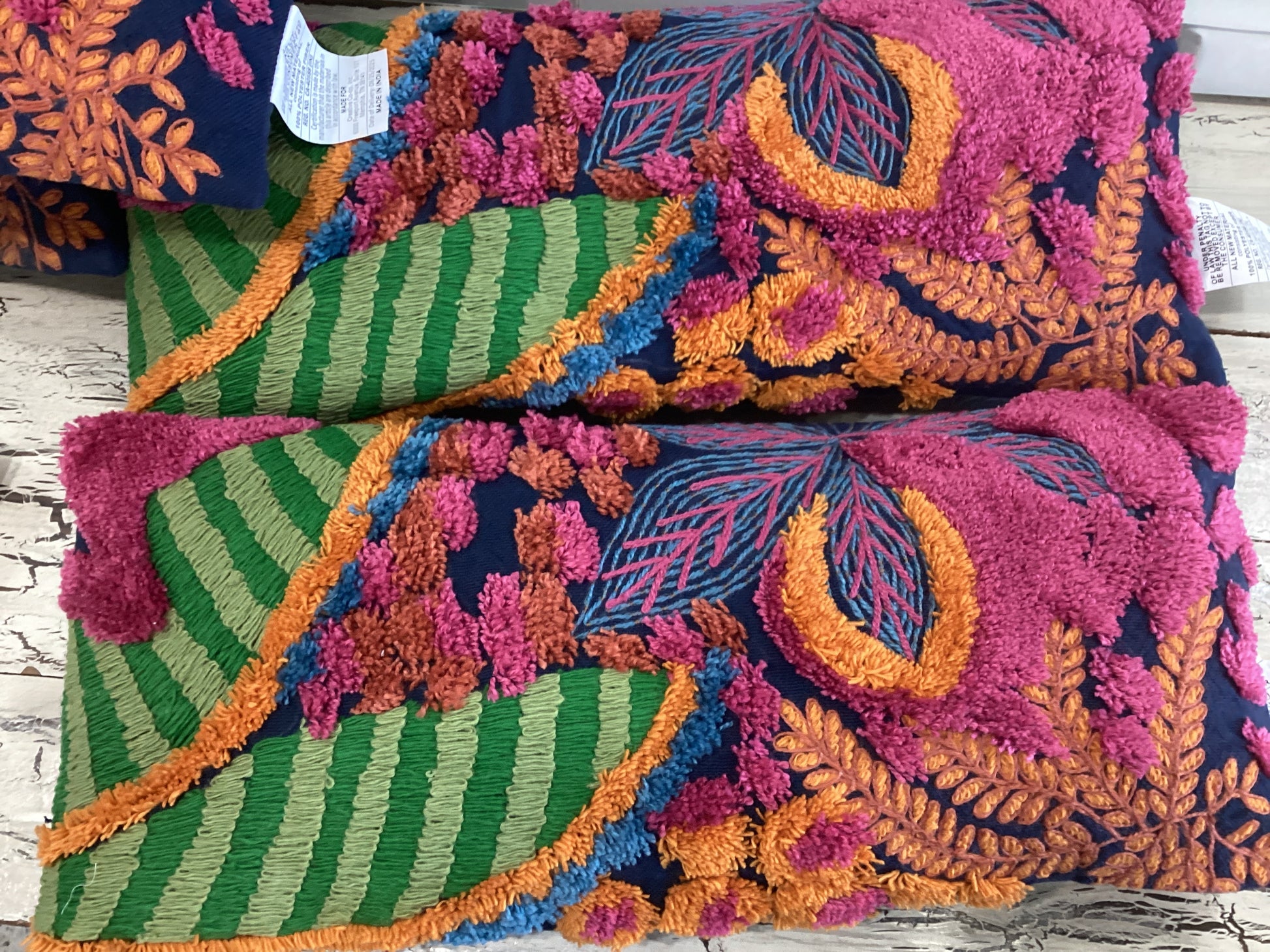 27”L x 12”H Embroidered Fabric Indoor/Outdoor Lumbar Pillow w/ Tufted Botanicals
