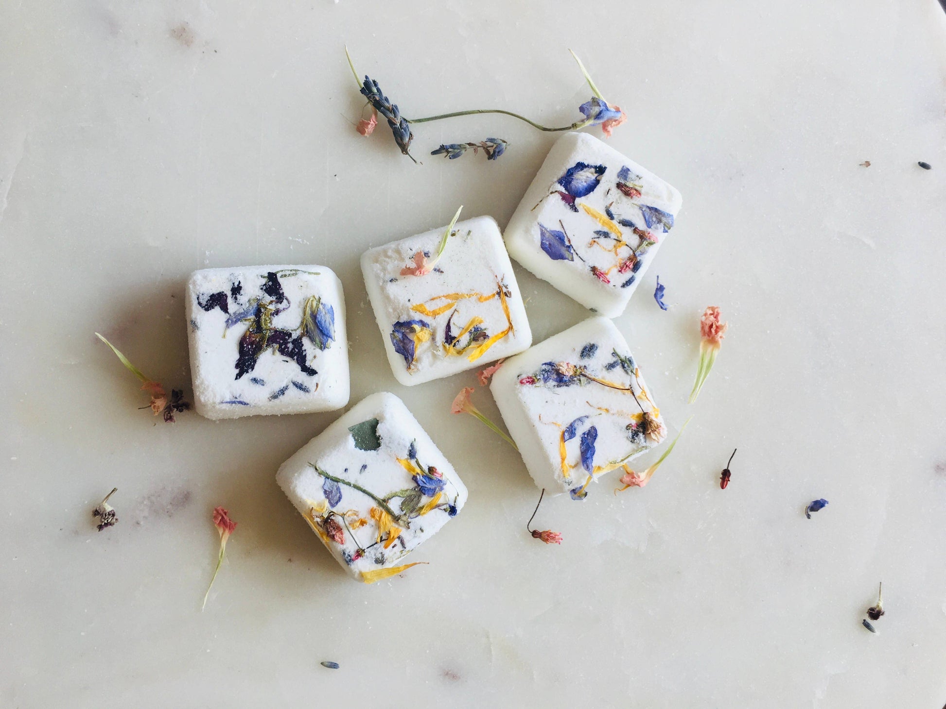 These beautiful sleep steamers are blended with Neroli + Vanilla + Lavender + dried bespoke mixed botanicals to sooth + calm + relax. They can double as a bath tablet as well. Wet to activate and place on the shelf of your shower near your face to diffuse or for a light diffusion, place on the floor of the shower.
