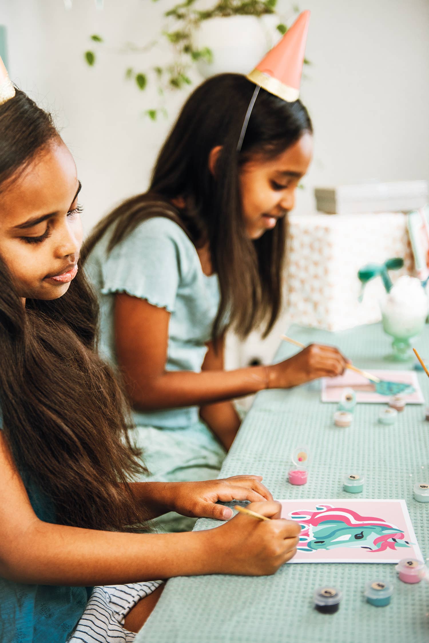 About Elle Crée's kits for kids: Paint-by-number kits provide a calming, creative experience that helps develop fundamental painting basics and artistic skills like brush control and color recognition. Most importantly our kits encourage confidence in every budding artist.